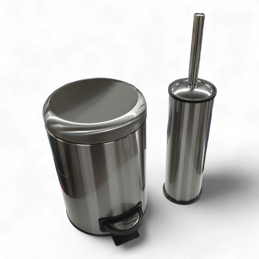 Erlebe stilvolle Sauberkeit im Bad mit dem 3 Liter Abfalleimer und Toilettenbürste Set von Belassa (Elit Serie)! Das robuste Edelstahl-Design mit Anti-Fingerprint-Beschichtung sorgt für einen edlen Look und bleibt dabei immer gepflegt.
