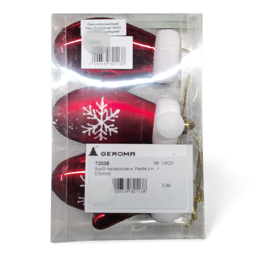3er Set Deko Fäustlinge Kunststoff, Durchm.. 0,5 cm / Weihnachtsdeko Abverkauf / TOP Neuware und B Ware