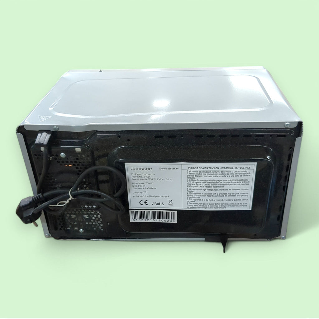 Entdecke die vielseitige Cecotec Proclean 3160 Mirror, eine leistungsstarke Mikrowelle mit 700 Watt und einem kraftvollen Grill von 800 Watt. Mit einem großzügigen Fassungsvermögen von 20 Litern bietet sie ausreichend Platz für deine Lieblingsgerichte. Die innovative Ready2Clean schmutzabweisende Beschichtung im Innenraum sorgt für müheloses Reinigen und mehr Zeit zum Genießen. Bitte beachte, dass es sich um Defektware handelt. Vertraue auf unsere transparente Produktbeschreibung und erlebe Qualität zu einem attraktiven Preis. Kochen war noch nie so einfach! Bitte beachte, dass es sich hierbei um Defektware für versierte Bastler, Elektriker oder als Teilespender handelt. Weitere Details findest Du in unserer transparenten Zustandsbeschreibung.