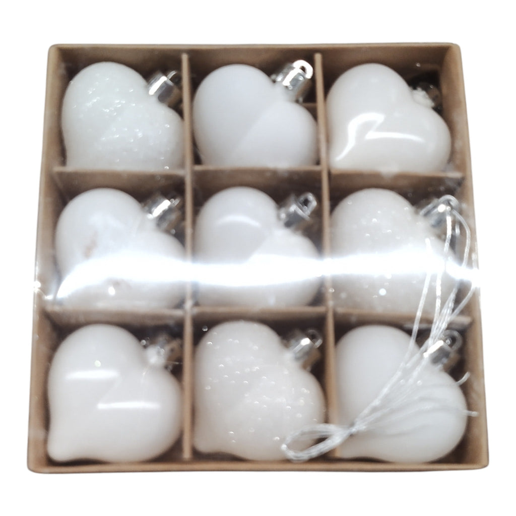 Christbaumkugeln "Herz" 9-er Set, matt weiß / Weihnachtsdeko Abverkauf / TOP Neuware und B Ware