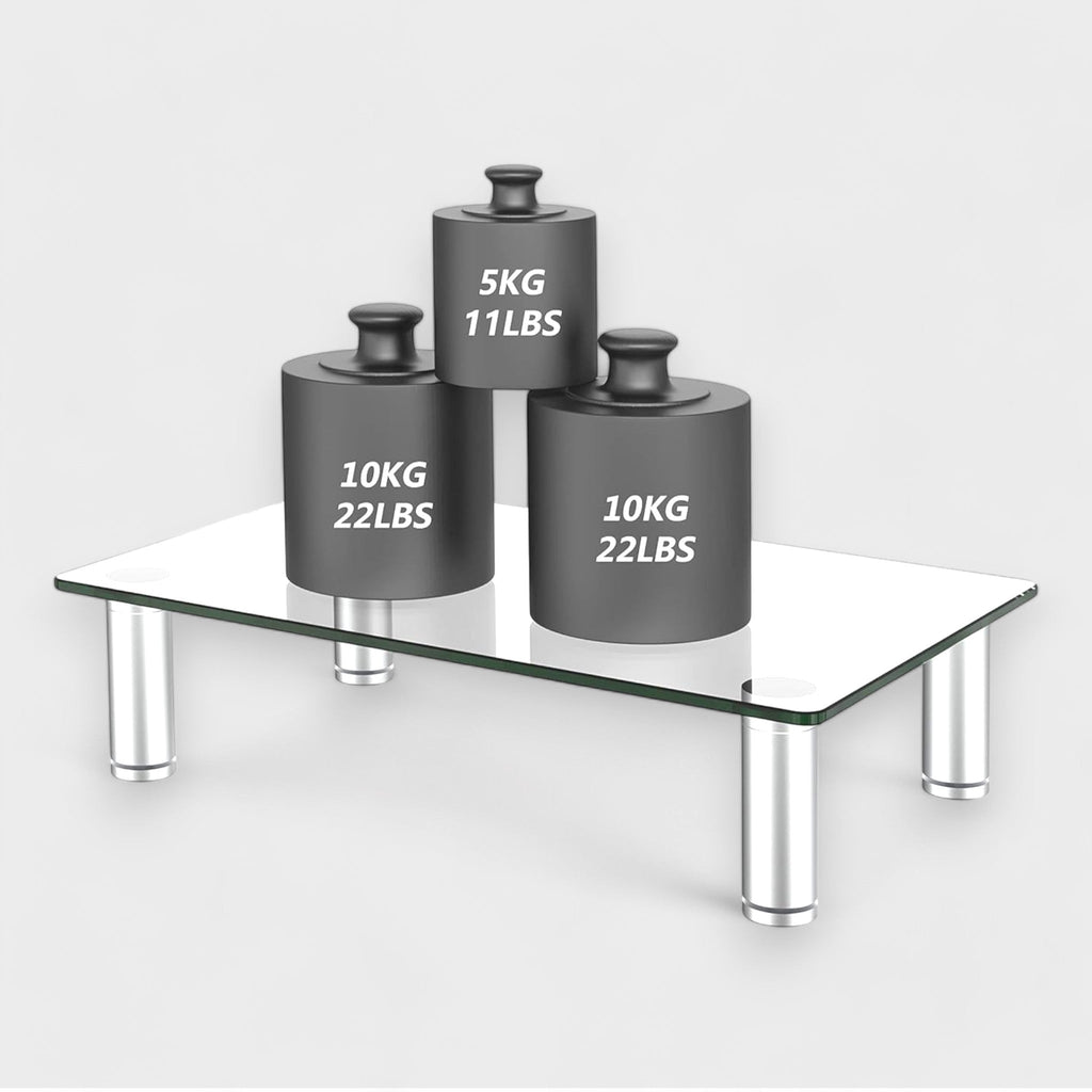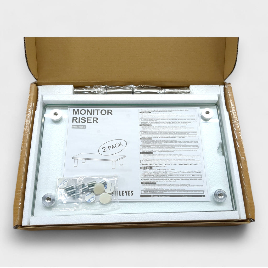 Hebe deinen Monitor, Laptop oder Fernseher mit unseren eleganten Monitorerhöhungen aus gehärtetem Glas und robusten Edelstahlbeinen in neue Höhen! Mit einer höhenverstellbaren Option von ca. 7,5 bis 8,5 cm sorgst du nicht nur für eine optimale Ergonomie, sondern setzt auch einen modernen Akzent auf deinem Schreibtisch. Das abgerundete Design fügt sich nahtlos in jede Umgebung ein und ermöglicht eine schnelle Montage – einfacher geht's nicht!