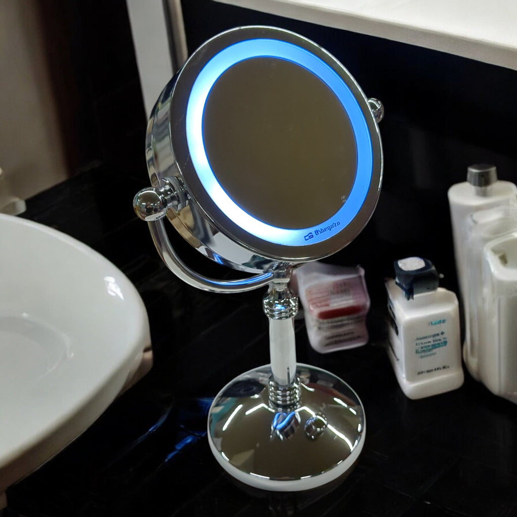 Die stufenlos regulierbare LED-Beleuchtung sorgt für das ideale Licht, egal ob beim Auftragen von Make-up oder beim Frisieren. Dank der Anti-Rutsch Unterseite bleibt der Spiegel sicher an seinem Platz. Mit geprüfter Qualität von Intertek GS bist du zudem auf der sicheren Seite.