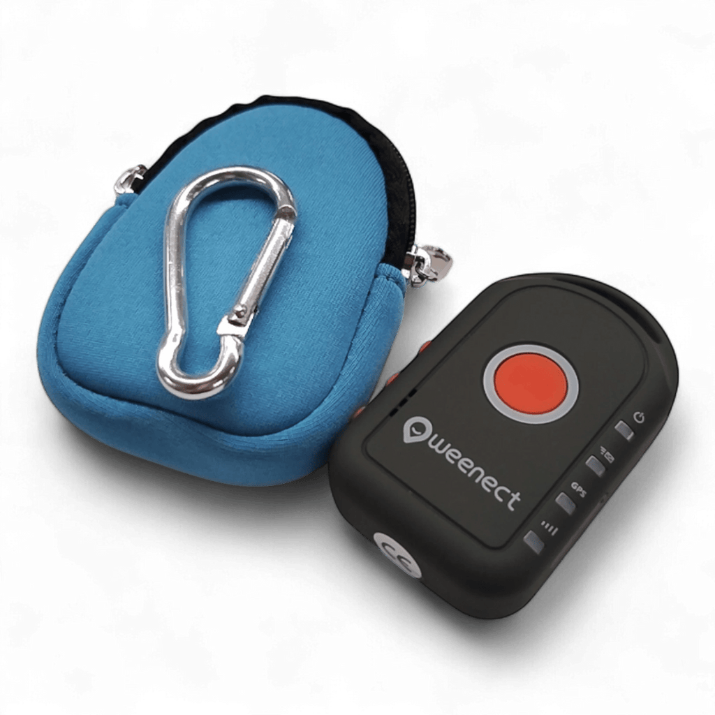 Wennect GPS Tracker, Tasche, Karabinerhaken, Kabel, Kurzanleitung.